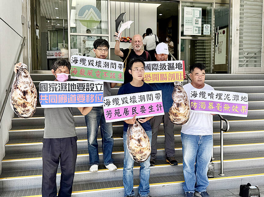 Local fishery worker Lee Kuo-chung (李國忠) said the construction of wind turbines in a previous project produced murky seawater and caused a drastic decline in intertidal species, leading to great financial losses to oyster farmers.