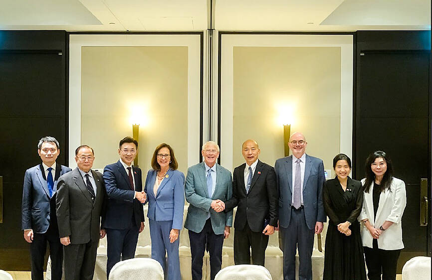 Han said that the meeting, also attended by American Institute in Taiwan Director Raymond Greene, highlighted cross-party support for Taiwan’s defense initiatives and the US-Taiwan partnership.