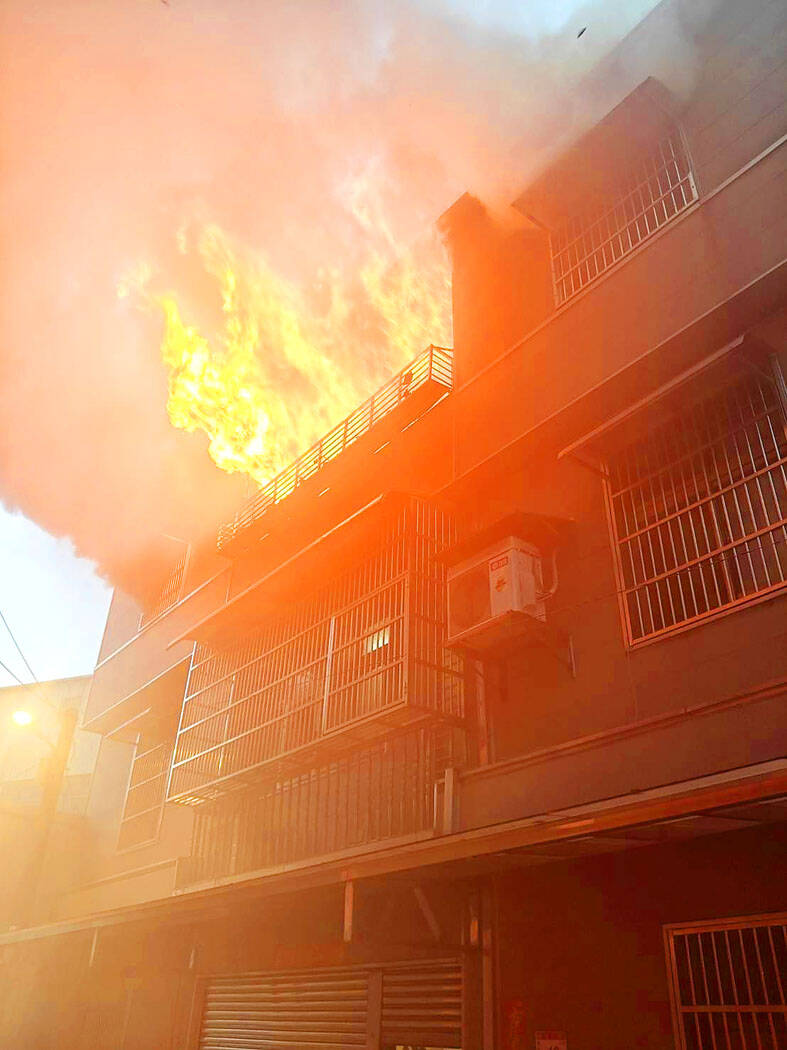 The blaze broke out at about 5am at a three-story residence made of reinforced concrete on Long-an Street, sending heavy flames and thick smoke into the air, the department said.