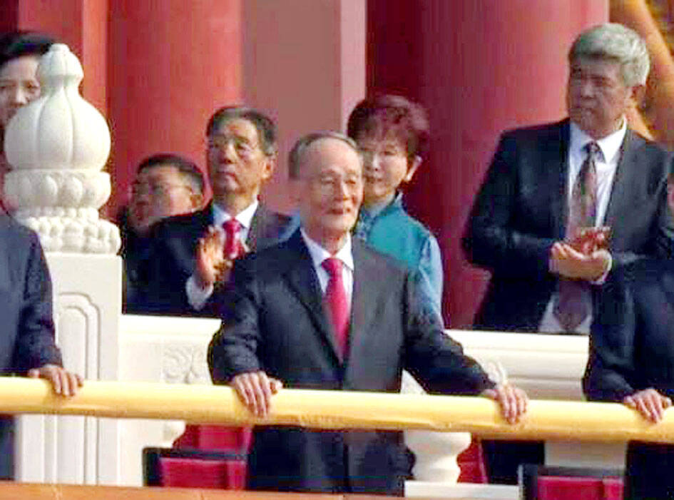 In China Central Television’s live broadcast, Hung could be seen standing near former Chinese vice president Wang Qishan (王岐山).