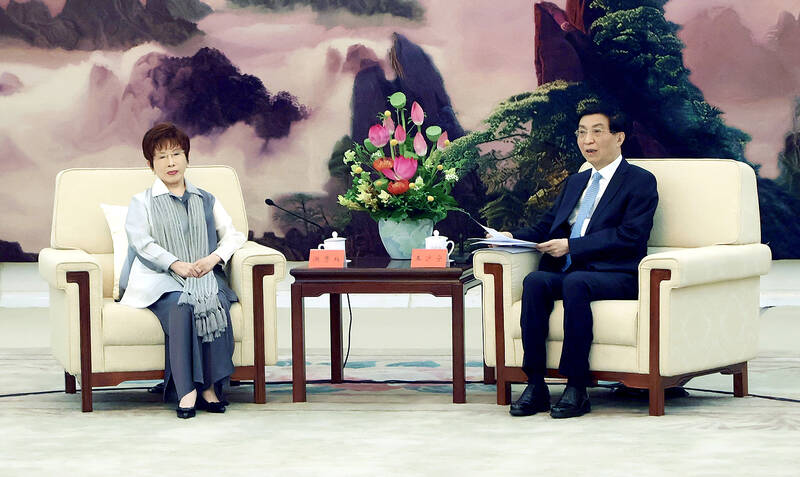 Aside from the Chinese military parade on Wednesday, Hung met with the Chinese People’s Political Consultative Conference Chairman Wang Huning (王滬寧) yesterday afternoon.