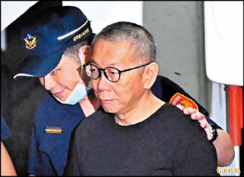 Former Taipei Mayor Ko Wen-je (柯文哲) broke down in tears multiple times yesterday as he spoke about judicial probes that were “politically motivated” and of inhumane treatment during his detention, at a court hearing on his appeal for bail.
