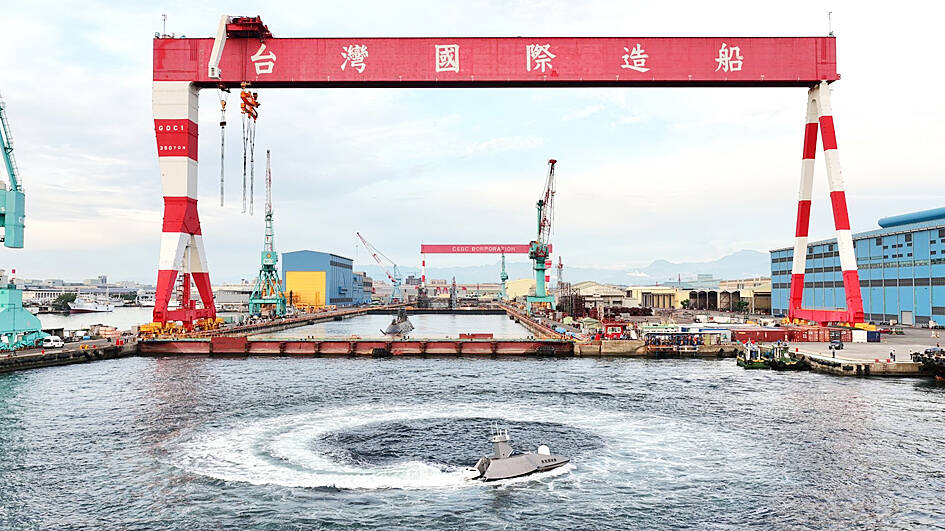 It can also be fitted with bow-mounted explosives and light torpedoes, CSBC chairman Huang Cheng-hung (黃正弘) said when the vessel was showcased in March.