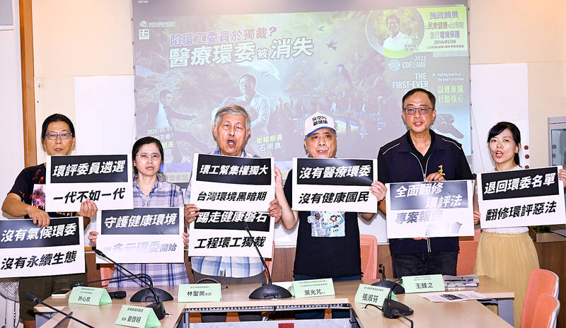 Minister of Environment Peng Chi-ming (彭?明) in his first appointment of EIA committee members concentrated power to engineers while wiping out medical care and public health representation, Yeh said.
