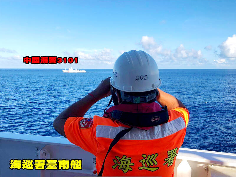 China Coast Guard ships have frequently engaged in provocative and unlawful actions against neighboring countries, the CGA said yesterday, adding that it would keep dispatching vessels to safeguard the area and defend Taiwan’s national sovereignty.