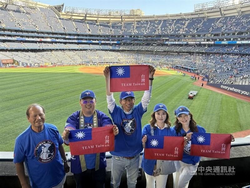About 500 members of the Taiwanese-Canadian community gathered yesterday for the first-ever "Taiwan Day," as the Toronto Blue Jays beat the Baltimore Orioles 11-2 at a sold-out Rogers Center.