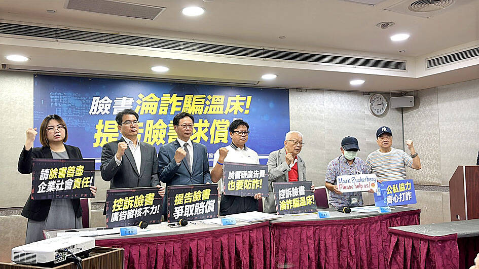 The Taiwan Civic Anti-Fraud Association yesterday said it would assist eight people who were scammed by advertisements on Facebook in suing Meta, the first such lawsuit in Taiwan against the company.