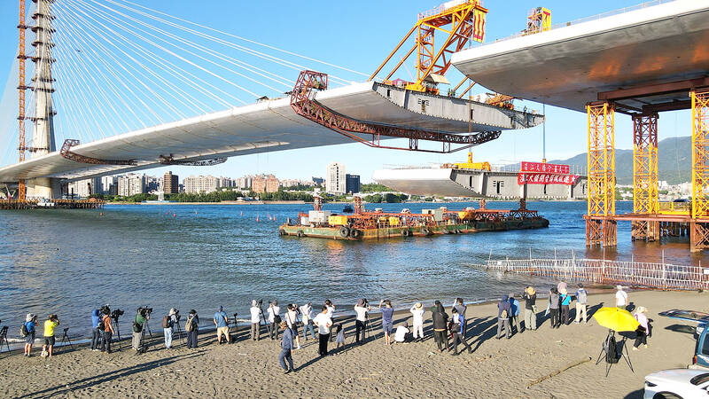 The bureau said that the dates were chosen because the final piece extends over a shallow section of the Tamsui River, requiring a high tide to allow a floating crane vessel to maneuver into position.
