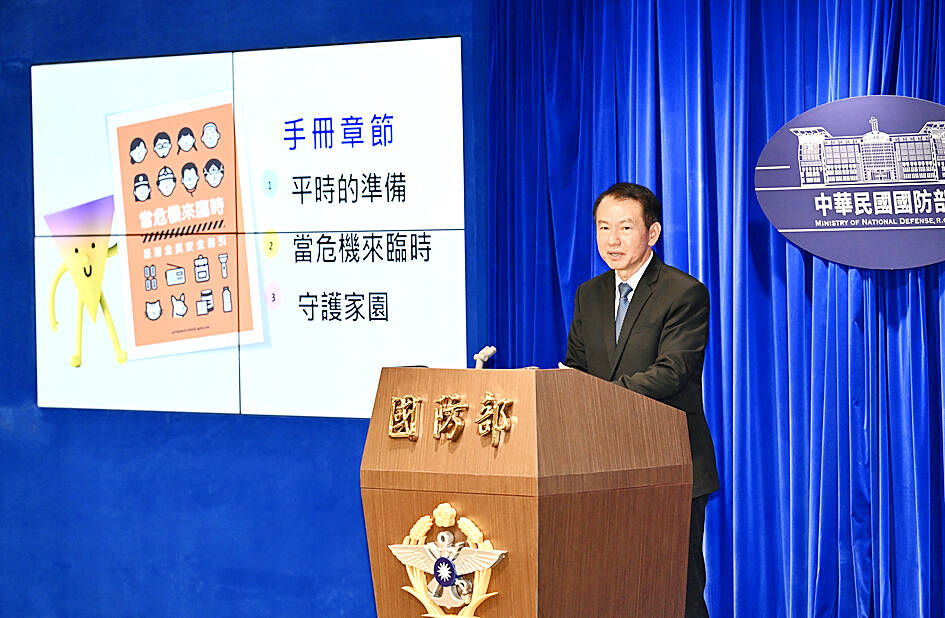 When a crisis occurs, the government would do its utmost to maintain stability in people’s livelihoods and the economy, and provide essential goods to everyone through a comprehensive rationing system, All-out Defense Mobilization Agency Director Shen Wei-chih (沈威志) told a news conference where the updated civil defense handbook was introduced.