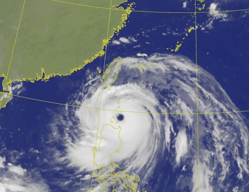 As of 10am, the typhoon's center was about 340km south-southeast of Cape Oluanpi (鵝鑾鼻), moving west at 20kph, the CWA said.