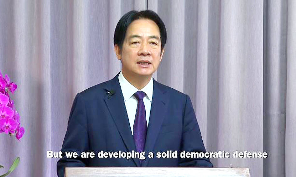 President William Lai (賴清德) discussed Taiwan’s position and strategies to strengthen the global defense of democracy, economic security and supply chain resilience in a video address to be shown at the Concordia Annual Summit in New York.