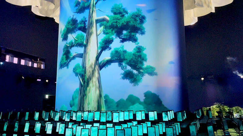 In the “Life Theater,” visitors are greeted by a large cylindrical projection of a Taiwania tree to showcase Taiwan’s rich and diverse ecosystems.