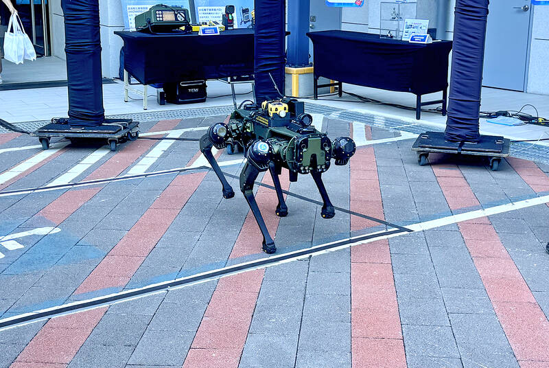 Deputy Minister of Environment Hsieh Yein-rui (謝燕儒) said the robot dog, which was purchased from the US, weighs 51kg and costs about NT$15 million (US$492,805).