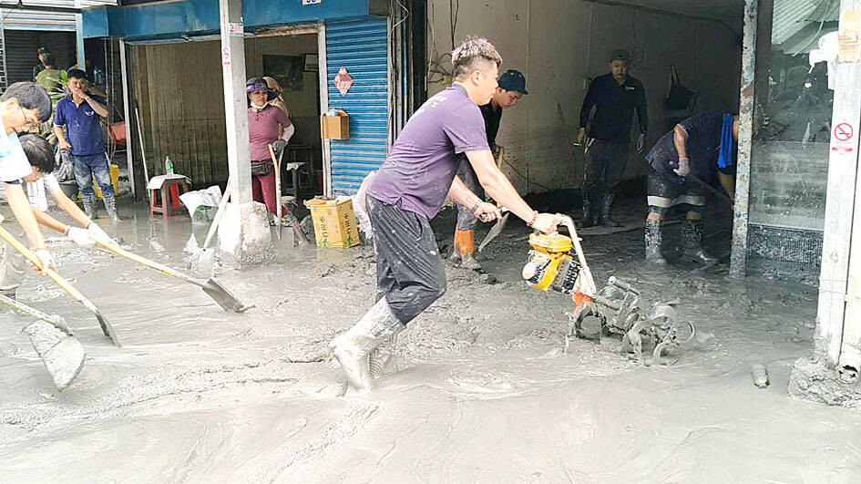 Volunteers from across the nation have traveled to Hualien with shovels and hoes, nicknamed “Shovel Supermen,” to help clear the mud.