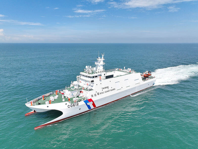 The Coast Guard Administration (CGA) yesterday showcased its 10th 600-tonne patrol vessel, CG612 Suao, at a ceremony in Kaohsiung. Another vessel of the same class, CG613, was officially named Lanyu during the event, and would be deployed to the CGA’s mobile flotilla in eastern Taiwan. Suao is 65m long and 14.8m wide, with a maximum speed of 40 knots and a range of 2,000 nautical miles (3,704km), the CGA said, adding that it is equipped with a high-pressure water canon, and could carry out firefighting, law enforcement, and search-and-rescue missions. Its low-resistance hull design and improved accommodations also enhance performance and living conditions on board, it said. Ocean Affairs Council Minister Kuan Bi-ling (管碧玲), who presided over the ceremony, said Premier Cho Jung-tai (卓榮泰) had named the vessel Suao in January and has now formally entered service. Lanyu would bolster the coast guard’s presence in eastern waters, in cooperation with local communities, Kuan added. The CGA said it would continue to expand its fleet and bolster its capabilities in law enforcement, rescue operations, protection of fishing rights, maritime services and marine conservation.