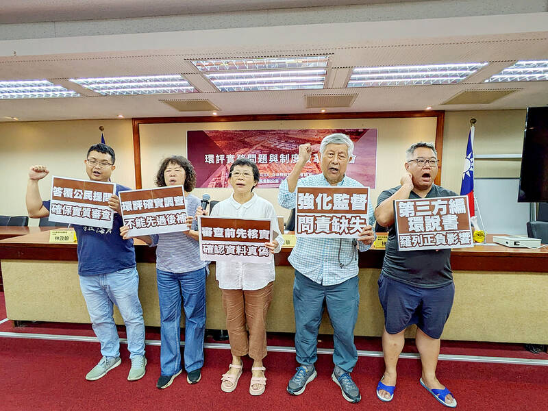 Environmental Jurists’ Association executive director Chang Yu-yin (張譽尹), who is the principal investigator of the EIA system checkup, said that selecting locations for development projects and evaluating project necessity involve value judgements.
