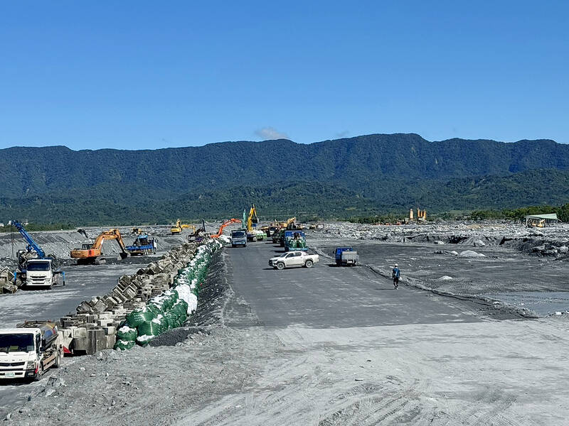 The 3-meter-high damaged levees along the Mataian River (馬太鞍溪) are being repaired and reinforced with a three-layer protection system, which is expected to be completed by today, the CEOC said.