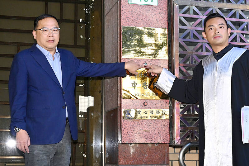 Democratic Progressive Party (DPP) Legislator Wang Yi-chuan (王義川) yesterday filed a lawsuit against seven people, including Taiwan People’s Party (TPP) Chairman Huang Kuo-chang (黃國昌), saying they received foreign funding in breach of national security and contravened personal privacy laws through the surveillance of politicians.