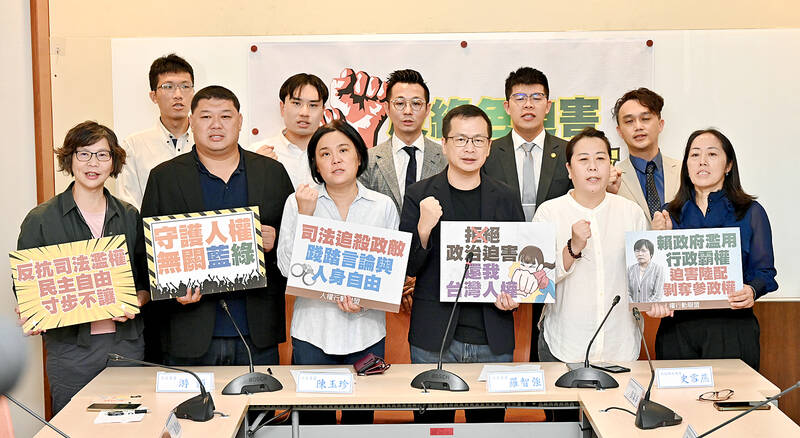 The alliance would provide legal consultation and assistance to people who are “victims of Democratic Progression Party (DPP) oppression,” Lo said, citing the situations of former Taipei mayor Ko Wen-je (柯文哲), Huang Lu Chin-ru (黃呂錦茹), former head of the KMT’s Taipei chapter, and Chinese spouses as examples of abuse.