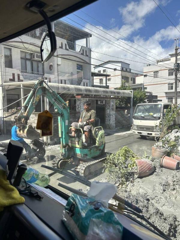 Along with his nephew, Lin hauled two Bobcat skid steer loaders to Guangfu after flooding left the small village covered with a heavy layer of mud and debris, Lin Yi-hua said.