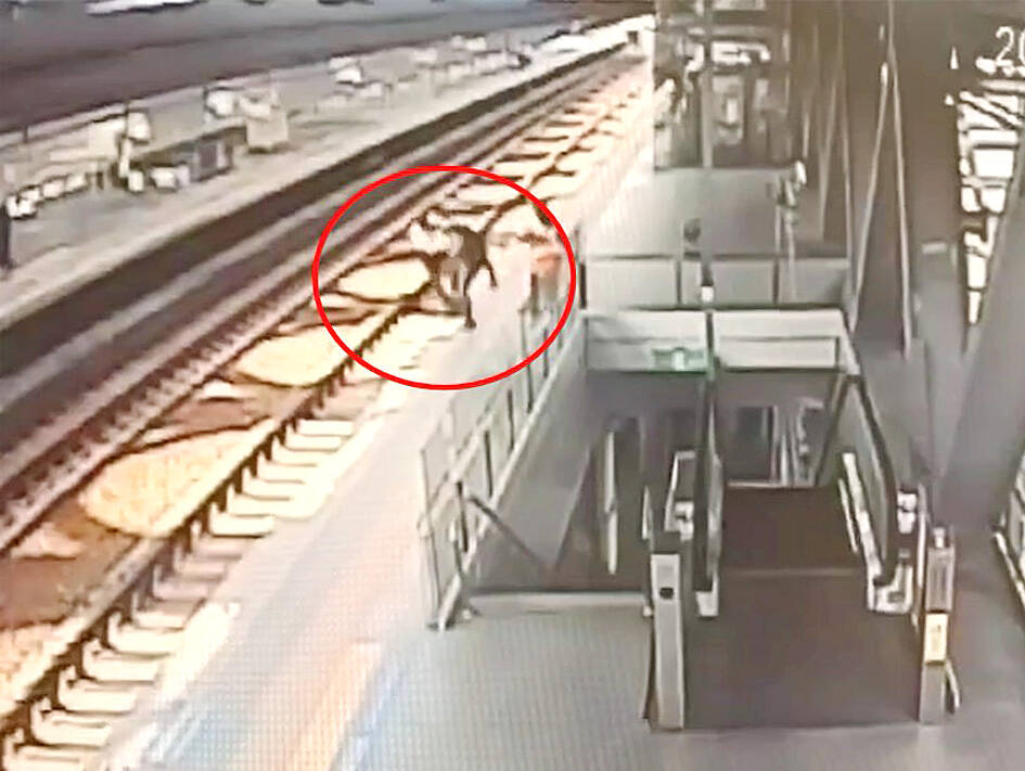 Taichung prosecutors yesterday sought the continued detention of a man accused of pushing a Taiwan Railway Corp station worker onto the tracks after entering the platform without a ticket. The Taichung District Prosecutors’ Office said the 39-year-old suspect, surnamed Chen (陳), is being investigated for attempted murder. After questioning Chen yesterday morning, prosecutors said he poses a flight risk and requested his detention. The incident occurred on Monday afternoon at Wuquan Station in Taichung, where Chen allegedly entered the station without a ticket. A station worker tried to get Chen to leave the platform, and Chen allegedly pushed him onto the tracks, the Taichung Precinct of the Railway Police Bureau said. The worker broke his ankle, but climbed back onto the platform, police said. Police said they were notified of the incident at 3:44pm on Monday, and Chen was arrested at about 6pm after fleeing the scene.