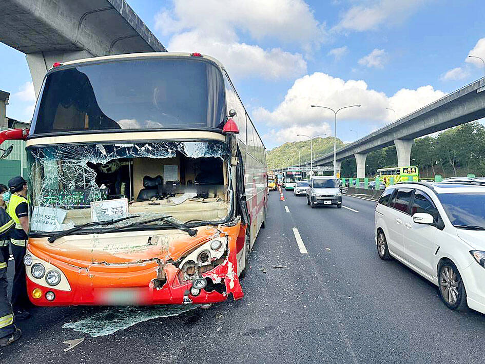 A preliminary investigation found that the truck driver, a 51-year-old man surnamed Chung (鍾), allegedly failed to maintain a safe distance from the vehicle in front, swerved into the outer lane before coming to an abrupt stop, causing a bus driven by a 64-year-old man surnamed Liu (劉) to crash into the rear of the truck.