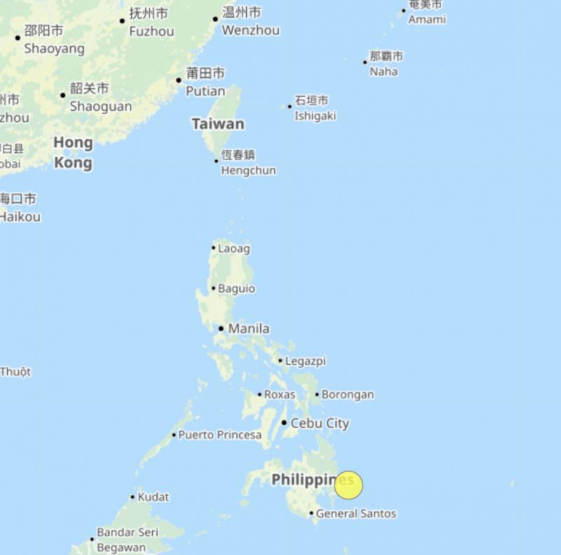 The Central Weather Administration (CWA) today issued a tsunami alert, after a magnitude 7.4 earthquake struck the southern Philippine island of Mindanao at 9:44am.