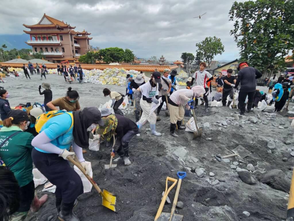 Nearly 2,000 volunteers are helping dredge and fortify flood-hit areas in Hualien County’s Guangfu Township (光復) today, with 15km of roadside ditches expected to be cleared by later this evening, Central Emergency Operation Center chief coordinator Chi Lien-cheng (季連成) said.