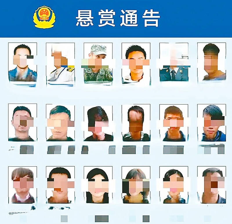 The public security bureau in the Chinese city of Xiamen on Saturday published the names, photographs and ID numbers of 18 alleged “core members” of the military unit.