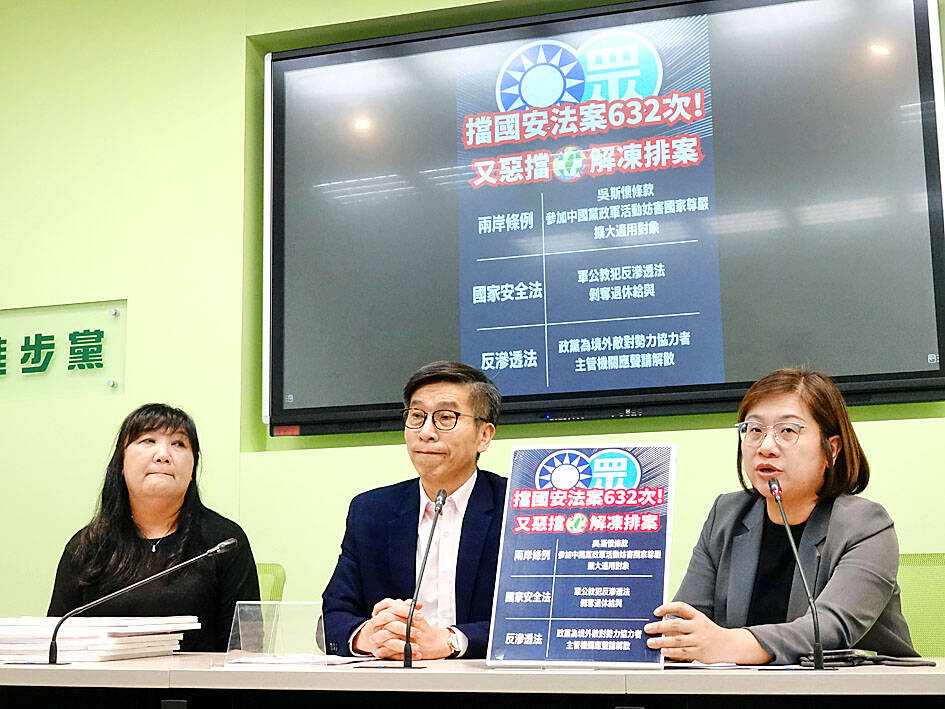 DPP caucus secretary-general Chen Pei-yu (陳培瑜) said that national security bills proposed by the DPP caucus since the new legislative term began in February last year have been blocked by the opposition 632 times.