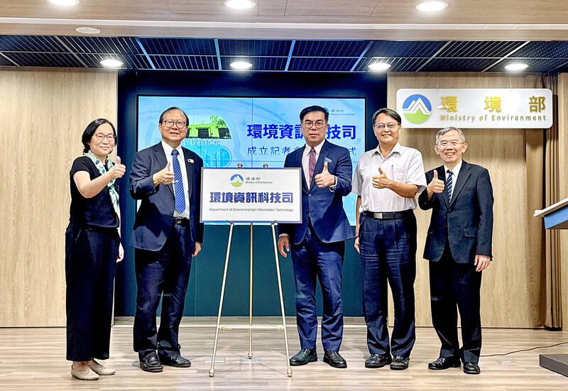 The Ministry of Environment (MOENV) yesterday unveiled the plaque for its new Department of Environmental Information Technology, with the goal of stepping up artificial intelligence (AI) applications in environmental governance.
