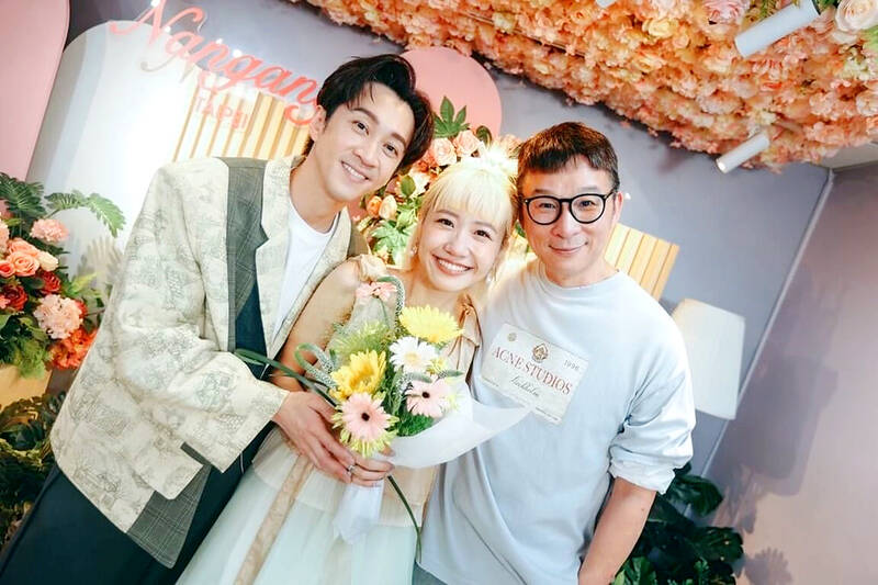 Taiwanese entertainers Hank Chen (陳漢典) and Lulu Huang (黃路梓茵) officially registered their marriage yesterday, a month after announcing their engagement, with family, friends and their talent agency head Isaac Chen (陳鎮川) in attendance to offer congratulations.