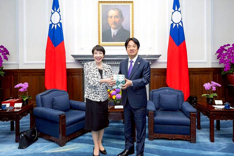 President William Lai (賴清德) yesterday congratulated Sanae Takaichi on becoming Japan’s first female prime minister, following her victory in the Liberal Democratic Party (LDP) leadership election, Presidential Office spokeswoman Karen Kuo (郭雅慧) said.