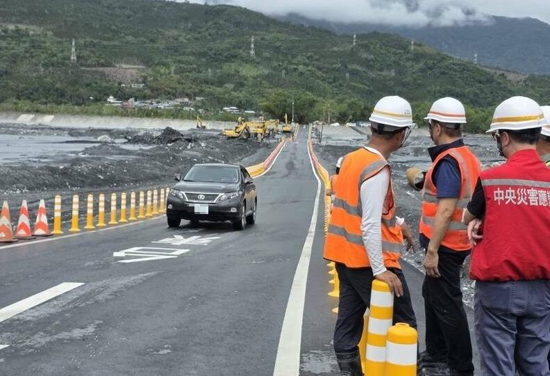 The bridge was built along Provincial Highway No. 9 and opened on Oct. 10 to restore access to Guangfu, after it was cut off when flood water destroyed Mataian River Bridge on Sept. 23.