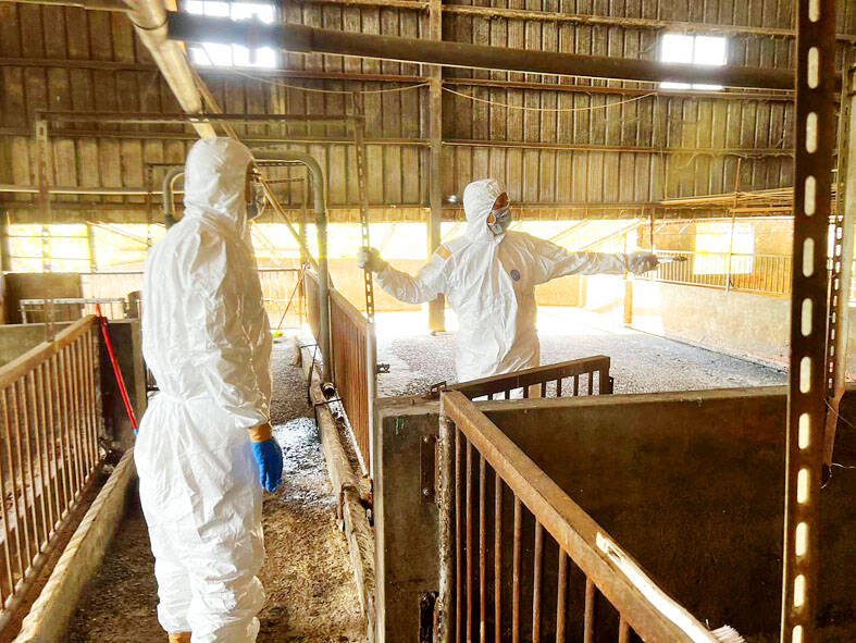 Taichung Deputy Mayor Cheng Chao-hsin (鄭照新) said that city government personnel have been conducting sample testing and disinfection work at 152 farms, including 55 high-risk sites, on a daily basis.
