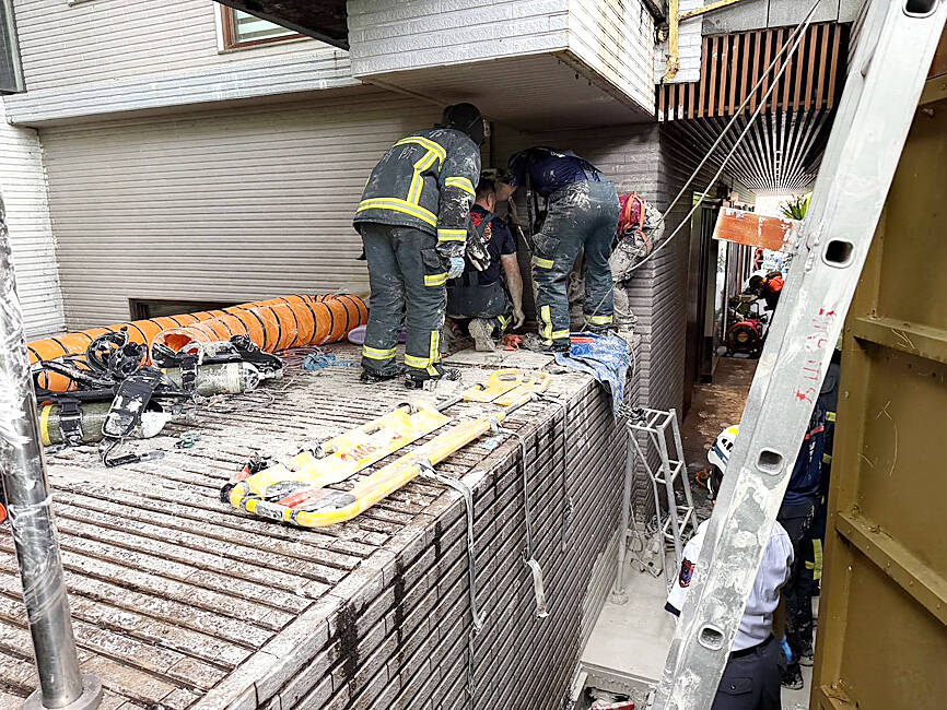 Upon arriving, firefighters found the workers — identified as a 54-year-old man surnamed Hsieh (謝) and a 42-year-old woman surnamed Yun (雲) — not breathing and without heartbeats, authorities said.
