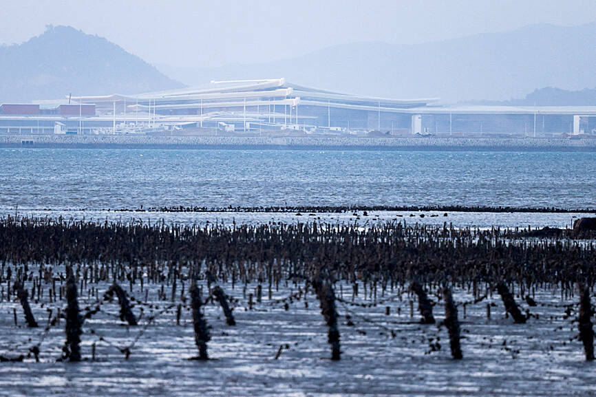 Xiamen Xiangan International Airport is only about 3km at its closest point from the islands in Kinmen County — the scene of on-off fighting during the Cold War — and construction work can be seen and heard clearly from the Taiwan side.