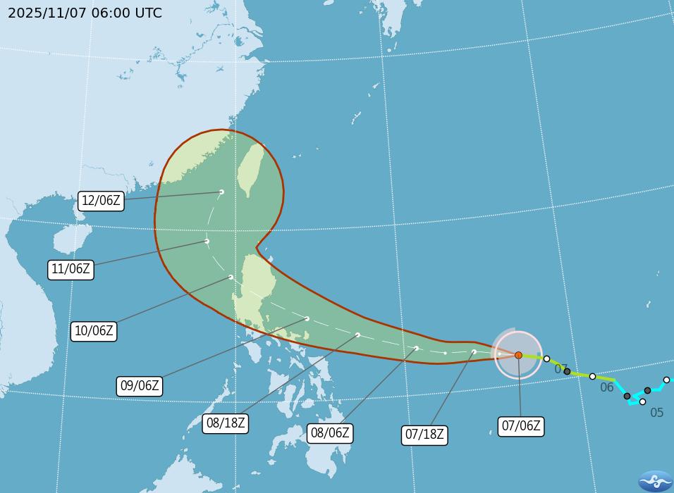 The tropical storm is currently over waters east of the Philippines and still far from Taiwan, CWA forecaster Tseng Chao-cheng (曾昭誠) said, adding that it could likely strengthen into a typhoon later in the day.