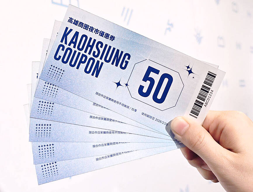 The Kaohsiung City Government yesterday unveiled NT$50 coupons in a bid to stimulate the city’s tourism economy ahead of this month’s live concerts.