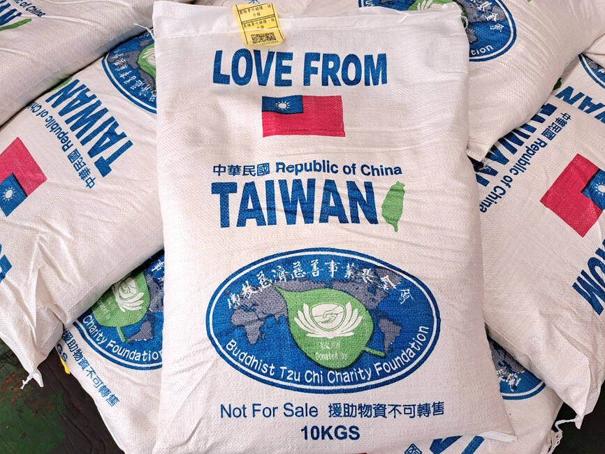 The agency this year collaborated with the foreign affairs ministry, non-governmental organizations (NGOs) — such as the Buddhist Compassion Relief Tzu Chi Foundation, World Vision Taiwan and Good Neighbors Taiwan — and other charities to ship rice labeled “Love From Taiwan” to 17 countries, he said.