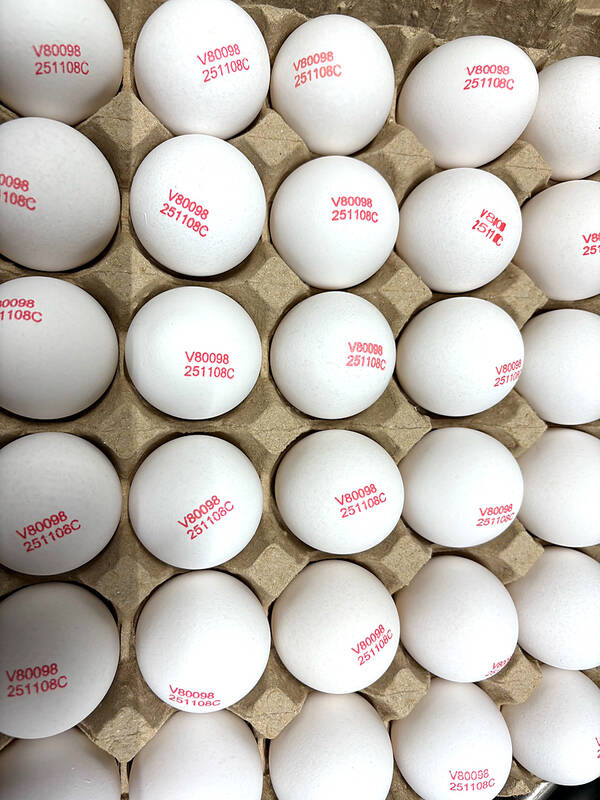 Taiwan’s eggs are stamped with a two-line traceability code, with the top line denoting a specific farm or egg washing facility, according to the Environmental Information Center Web site.