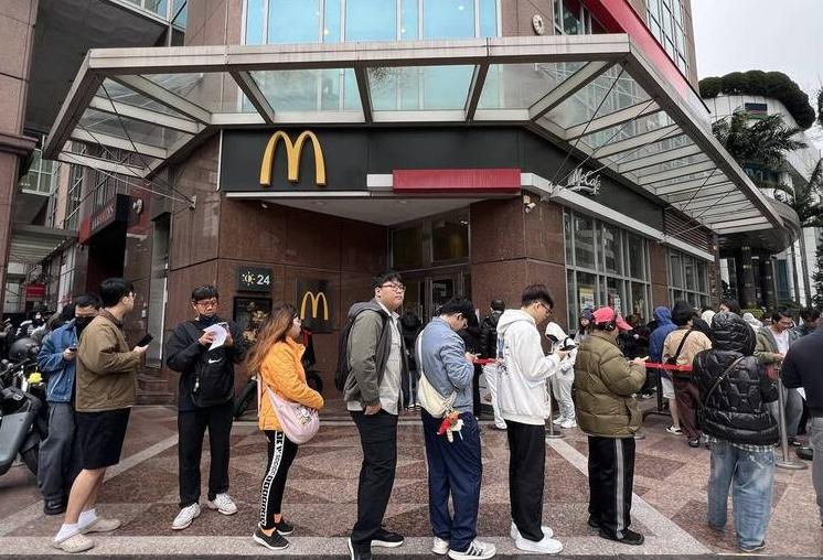 Hundreds of customers lined up at McDonald's outlets in Taiwan today, as the fast food chain brought back its milkshake after a nine-year hiatus, launching a limited trial at 12 designated restaurants.