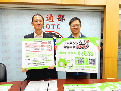 Starting next month, people who signed up for the TPass 2.0 program can receive a 15 percent rebate for trips on mid to long-distance freeway buses or on buses headed to the east coast twice every month, the Highway Bureau said. Bureau Director-General Lin Fu-shan (林福山) said the government started TPass 2.0 to offer rebates to frequent riders of public transportation, or people who use city buses, highway buses, trains or MRTs at least 11 times per month. As of Nov. 12, 265,000 people have registered for TPass 2.0, and about 16.56 million trips between February and September qualified for