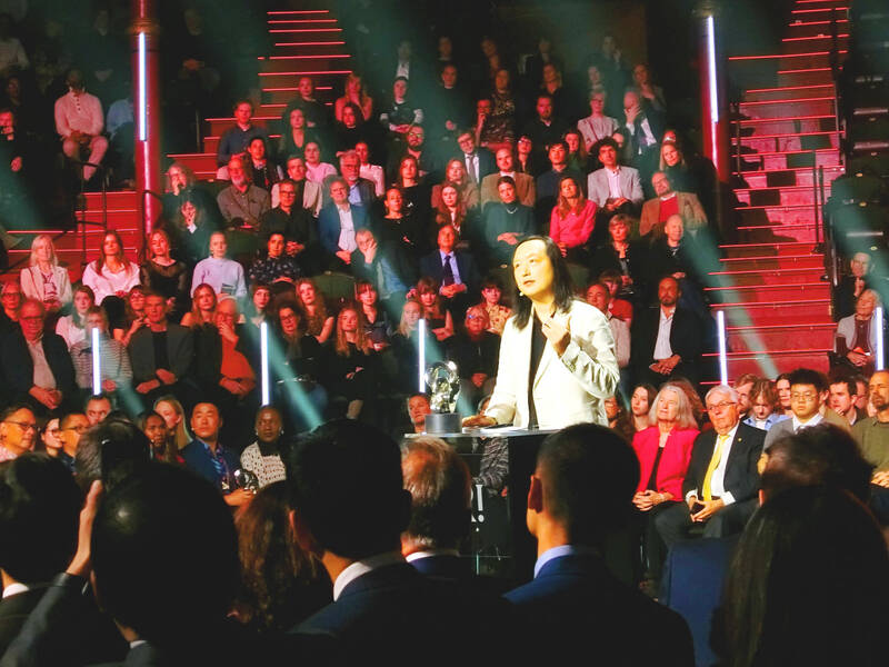 Artificial intelligence (AI) can be used to boost democracy and community rather than doomscrolling, Taiwanese programmer and cyberambassador Audrey Tang (唐鳳) said on Tuesday as she prepared to receive an award in Stockholm.