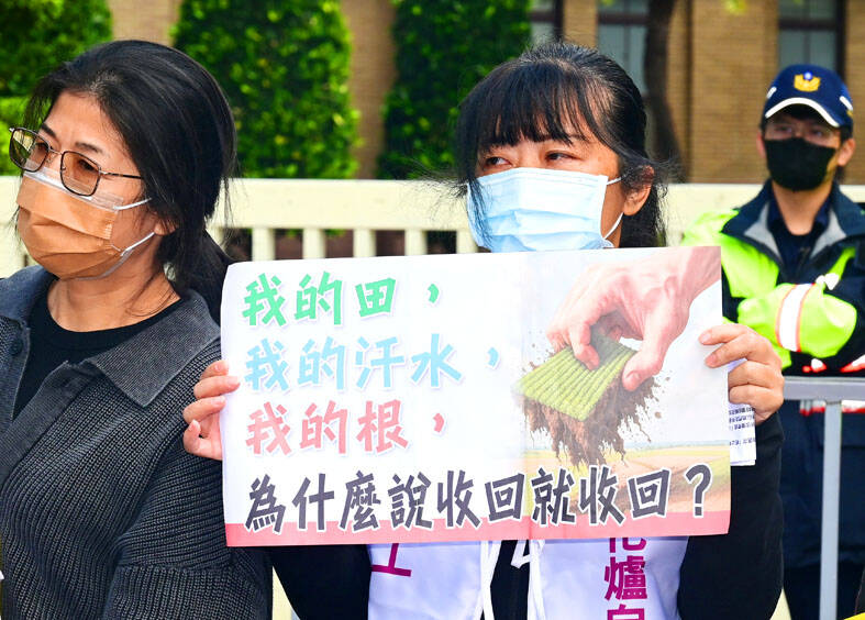 A farmer from the county, surnamed Lai (賴), said her family has been farming their land for decades, but the agency told her brother that the land has been allocated to the county government and would not be passed down in her family.