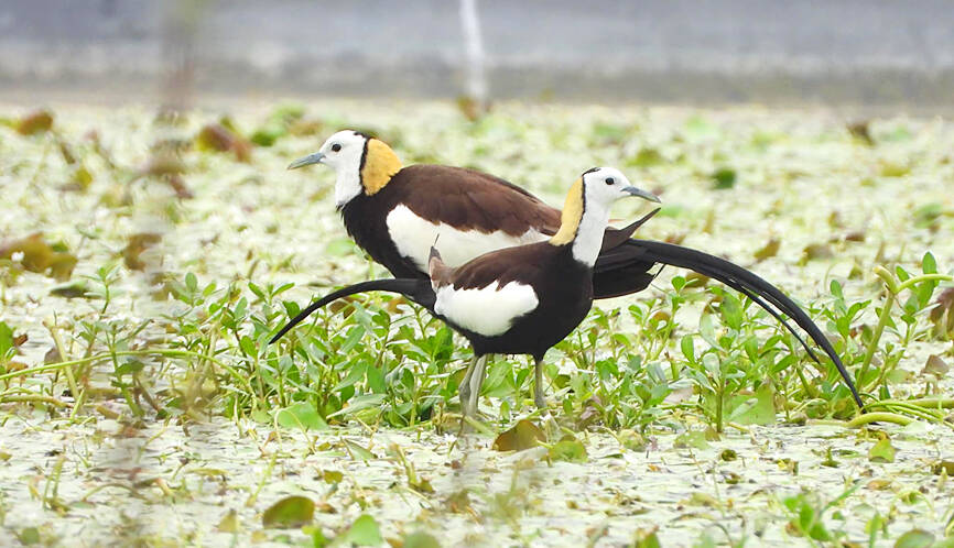 The number of pheasant-tailed jacanas dropped to about 50 nationwide in 2000, but through restoration efforts over the years, the number has climbed to nearly 10,000, Kaohsiung Wild Bird Society president Chuang Ching-fu (莊清富) said.