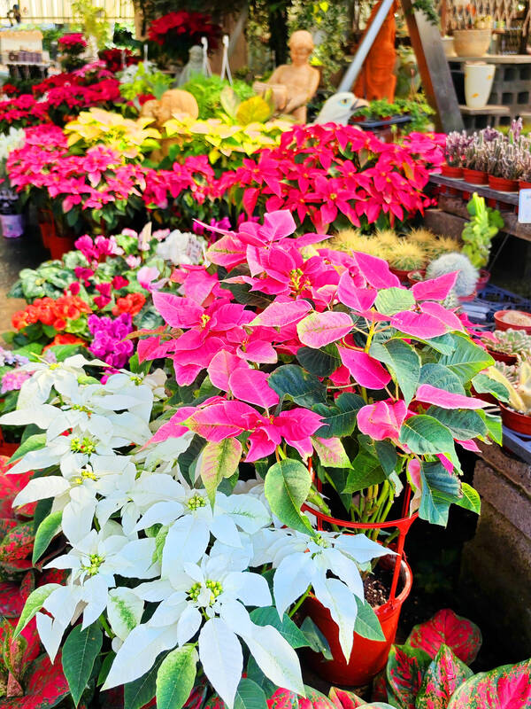 Poinsettias are not native to Taiwan, but thanks to the hard work of local botanists, there are now many cultivars better suited to the local climate, although one downside is that they have few bracts, so they could be less visually pleasing, he said.