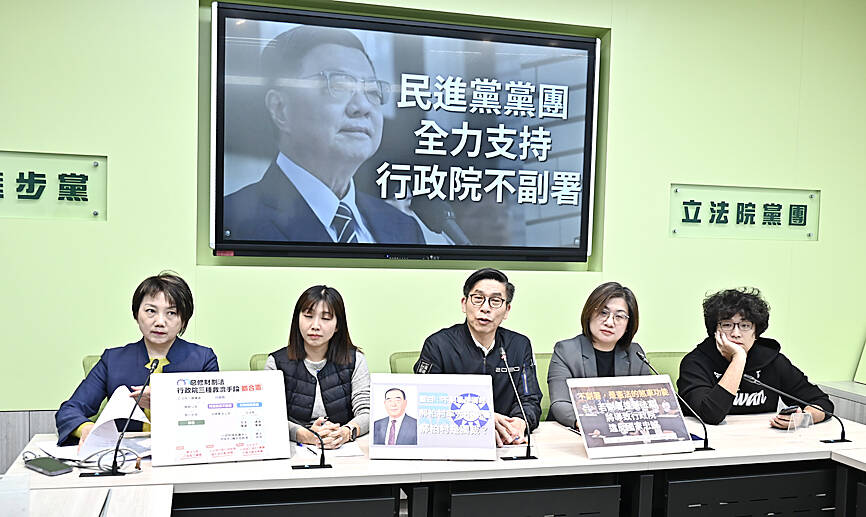DPP spokesman Lee Kun-cheng (李坤城) said that not countersigning the bill is a constitutional remedy available to the Executive Yuan, and if opposition lawmakers disagree with the Cabinet’s decision, they can pass a motion of no confidence and force the Cabinet to either resign or call for a legislative election.