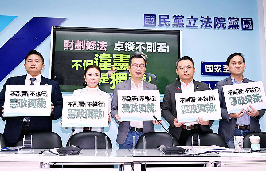 Those changes effectively paralyzed the court, and with no injunction order to halt the bill, Premier Cho Jung-tai (卓榮泰) has no option but to not countersign it to protect the constitutional system, he said.