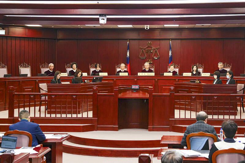 The Legislative Yuan on Dec. 20 last year passed amendments stipulating that no fewer than 10 justices must take part in deliberations of the Constitutional Court, and at least nine justices must agree in order to declare a law unconstitutional.
